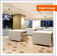 駅直結と便利なグランフロント大阪北館内にあるイベントスペースです。大きく分けて3つのスペースからなる空間は「利用スペース」「利用時間」に合わせてプランを選び、必要な場所を必要な時間だけお使いください。調理・食品イベントだけでなく、様々な用途にご利用いただけます。