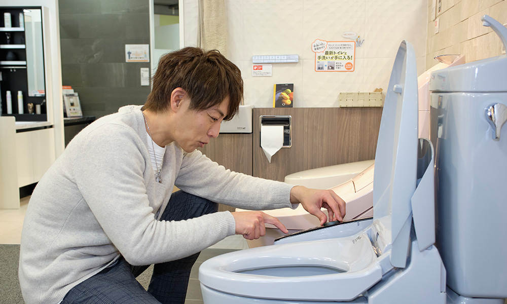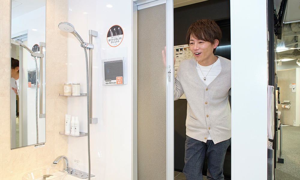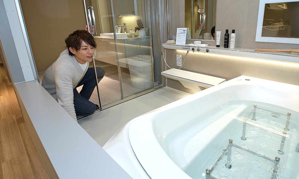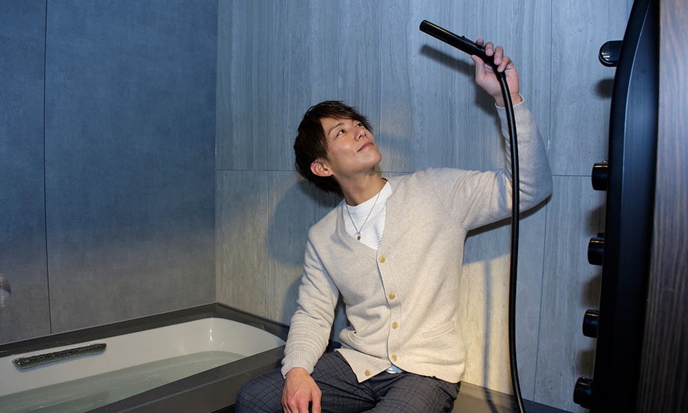 お風呂掃除が僕の役割なので、掃除しやすいとうれしいですね。例えばボディソープやシャンプーを置くラック、たくさん置けるのはいいけれど水はけはどうかなとか。ヌルヌルしたりカビが発生しないかな、とか。床の汚れも気になります。TOTOのショールームで知りましたが、最新のシステムバスには浴槽内を自動洗浄してくれたり、床に「きれい除菌水」を撒いてくれたりする機能があるんですね。びっくりしました!すごいです!