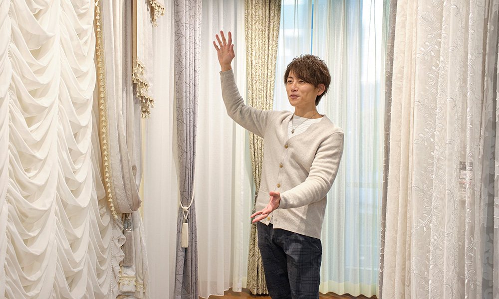 色も柄もたくさんあって、どう選んだらいいか迷いますね。遮光性、保温性とか、そういう機能面の要素もありますしね。僕はブルー系が好きですが、結局、妻の好みのものに落ち着きそうです。うちでは模様替えをよくやります。ソファとかテーブルの位置をパズルのように置き換える。帰宅したら家具の配置が変わってた 、ということもあります。景色が変わって新鮮で、ちょっとワクワクしてきます。子ども部屋も定期的に入れ替えます。引っ越し気分で片付けができ、子どもたちも楽しんでいます。部屋のカーテンを変えるというのも模様替えにはいい方法ですね。