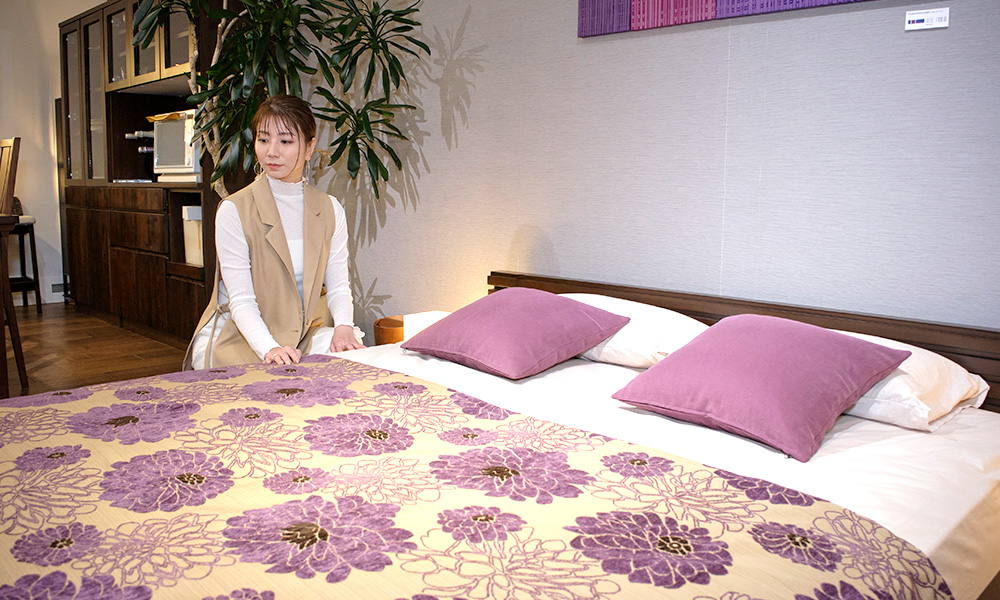 全体の統一感ですね。今住んでいる家は、クローゼットの扉の色が濃い茶色なので、家具もその色に合わせてコーディネートしました。いろんな色がごちゃごちゃしているのは落ち着かないです。自分が一番落ち着くシンプルな空間を作りたいんです。インテリアは、色もテイストも統一感がないと嫌ですね。a.flatでは、グリーン、パープル、ブルーなどをテーマに、アジアンリゾートのインテリアがコーディネートされていますね。お手本になる素敵なコーディネートだなと思いました。