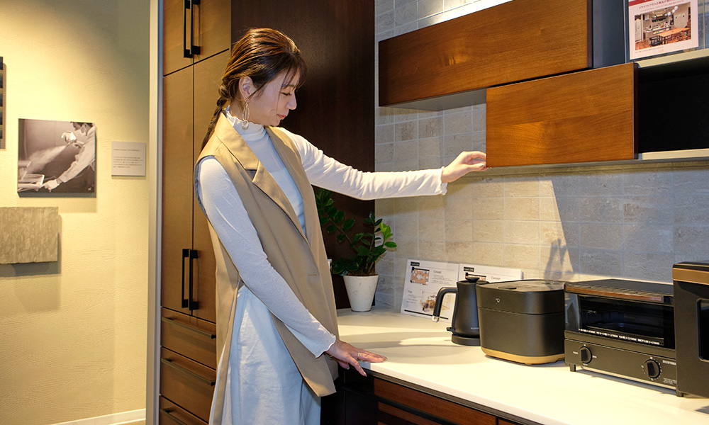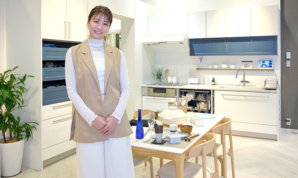 料理はたまにするぐらいなので、キッチンに特にこだわりはありません。でも、トクラスの栗原はるみさんプロデュースのキッチンはおしゃれでいいなと思いました。白とブルーのデザインがかわいくて、テンションが上がります。キッチン収納は、引き出しを閉めていても中が見えるオープンストッカー。引き出すと一度に見渡せるのも使いやすそうでいいですね。こんなかわいいキッチンなら、料理が得意でないわたしでもやる気が出そう。キッチンに立つのが楽しくなりそうです。