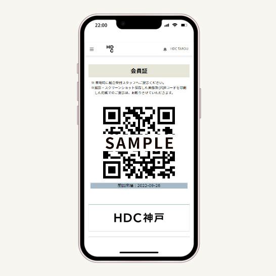 マイページへログインの上、HDC各施設の受付で会員証(QRコード)をご提示ください。