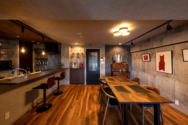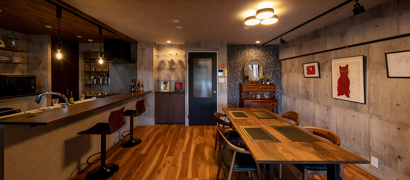 新たな暮らしに向けて、インテリアに強いこだわりを持った施主様のイメージを具現化したリフォーム事例を紹介します。細部にわたり好みのテイストに仕上げたなかでも、バーカウンターのような雰囲気のキッチンは特に注目です。