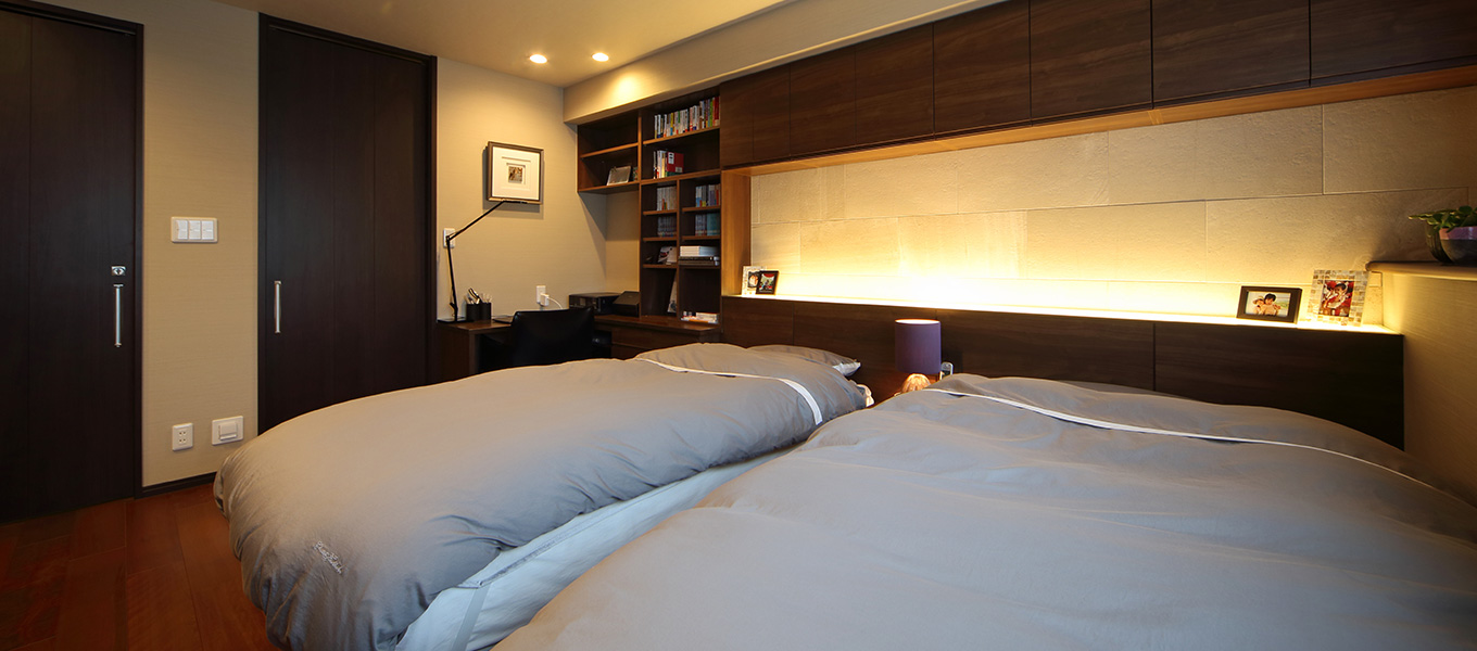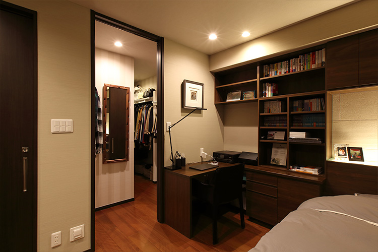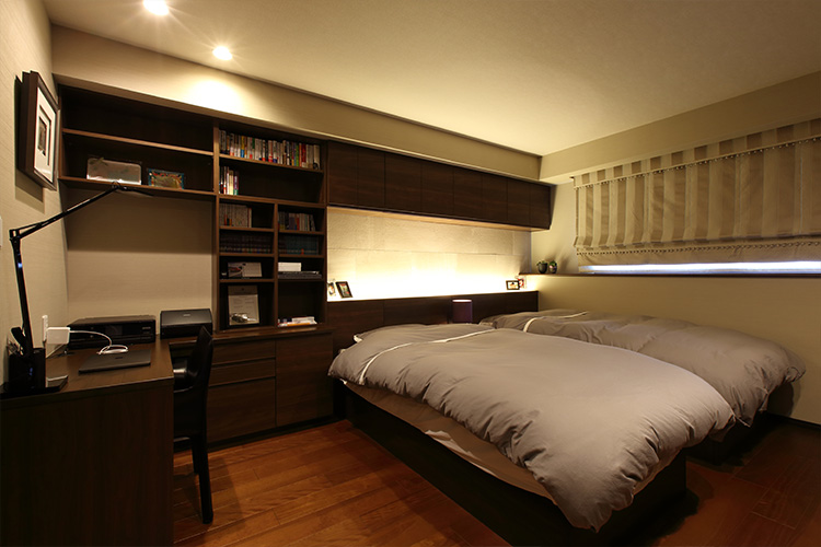 家族でくつろぐスペースと分けたいという要望があり、既存の和室は独立した寝室にリフォームしています。