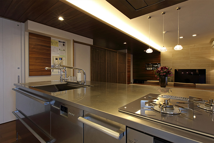 リビングダイニングやほかの部屋よりも先に、どんなキッチンにするかを決めていきました。いろいろ見た結果、奥様が選んだのがトーヨーキッチンです。それに合ったデザインを考えていく形をとりました。