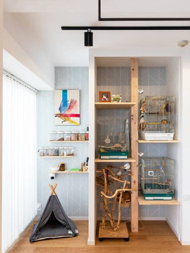 そして、止まり木のようなレイアウトがとても印象的です。いつもいる場所で、大好きなペットがいつでも見られるのは、癒し効果もありますし、喜んでくださっているのではないでしょうか?