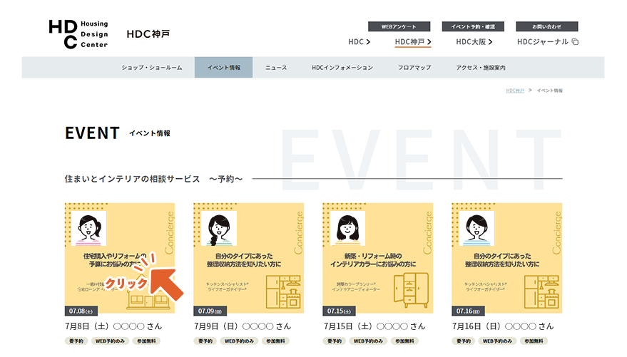 相談したいコンシェルジュのスケジュールを確認し、画像をクリックしてください。