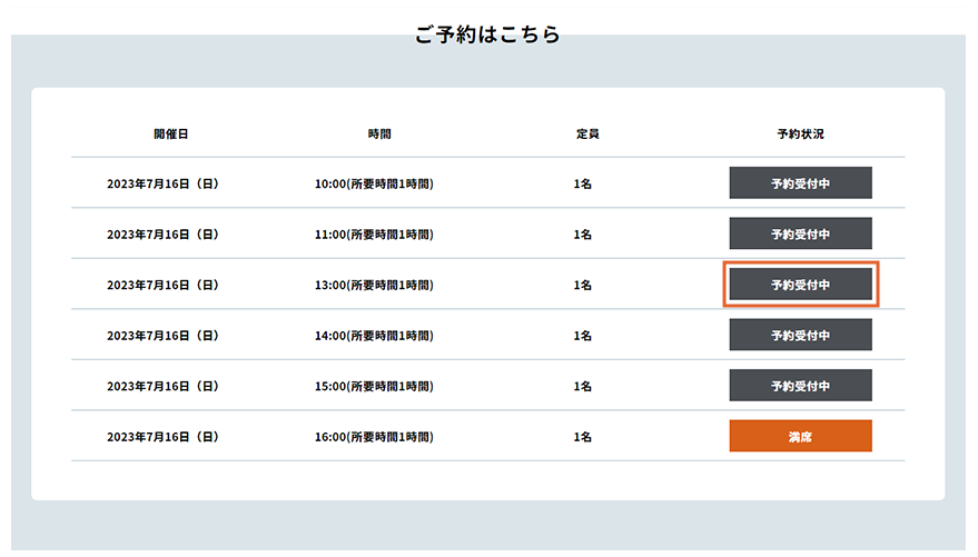 「ご予約はこちら」ボタンで予約ページへ進んでください。