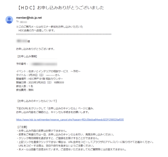 ※予約の変更・キャンセルを希望される場合はメール記載のURLからお手続きください。