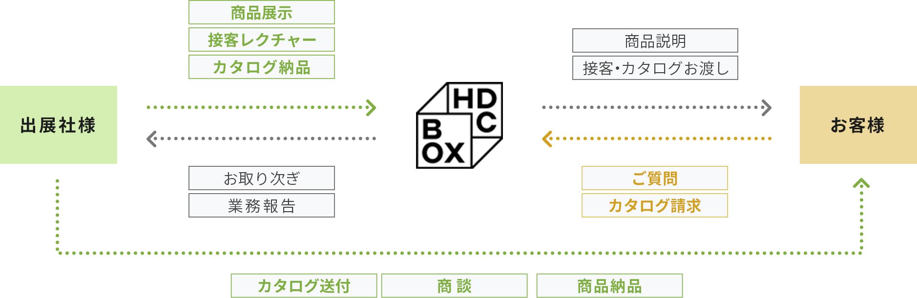 接客はお任せHDC BOXでは、専任スタッフが常駐し接客応対致します。出展社様は自社スタッフを派遣することなく商品を展示することができます。人件費の大幅な削減と効率の良いショールーム運営が実現できます。