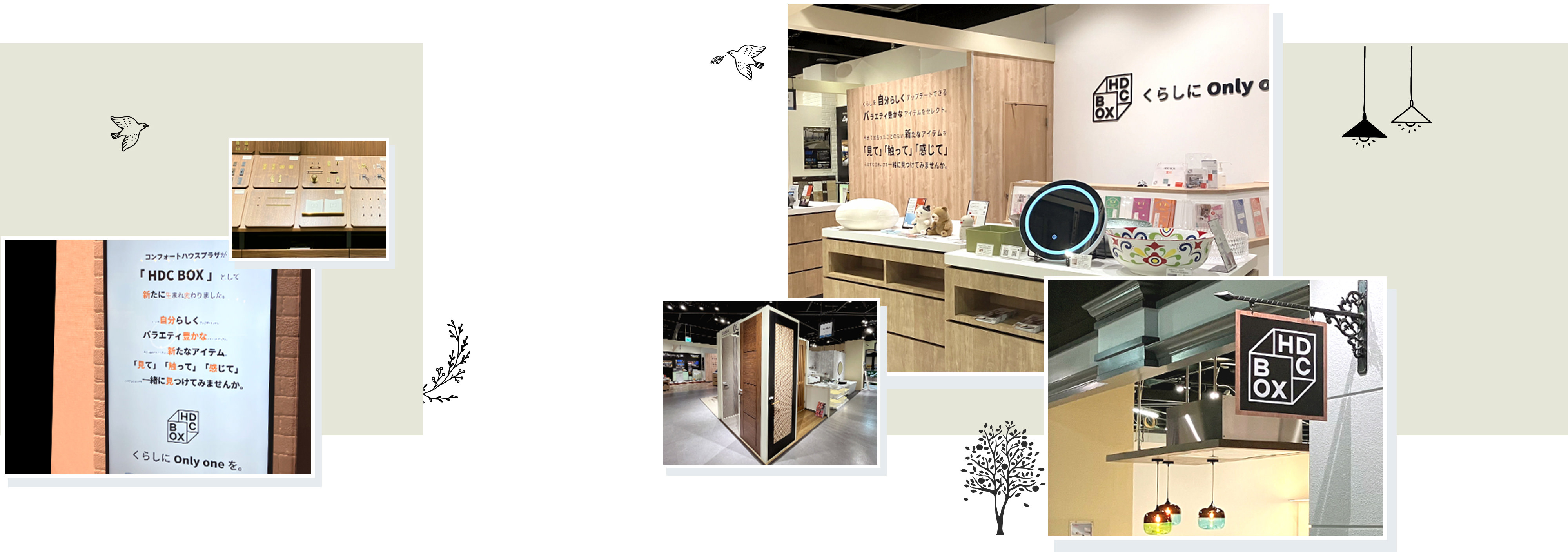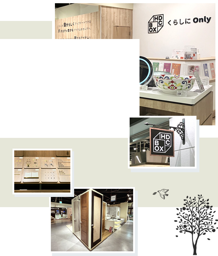 HDC BOXは住宅設備や建材の他、暮らしにまつわるバラエティ豊かなアイテムを一堂に集めた商品展示区画です。