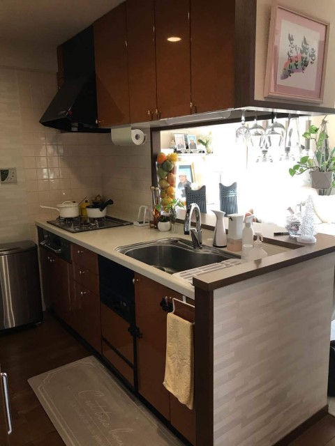 建物種別 マンション リフォーム箇所 キッチン、浴室、洗面化粧室、リビング・ダイニング、寝室・居室、玄関、その他 リフォーム価格 620万円 工期 3週間 対面カウンターは両側に通路を残しています。動線を意識し、グルっと回れる機能的な「回遊型」のキッチンです。高さのある吊戸棚は特殊なオーダーで収納力抜群!