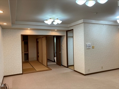 建物種別 マンション リフォーム箇所 全面、キッチン、洗面化粧室、トイレ、リビング・ダイニング、寝室・居室、玄関、その他 リフォーム価格 1200万円 工期 82日 スケルトンリフォーム。ご家族が帰省時も集まれる空間ができ、水廻りも広く使いやすい動線になりました。キッチンから、明るくなったLDKやお孫さんの様子も見渡せます。