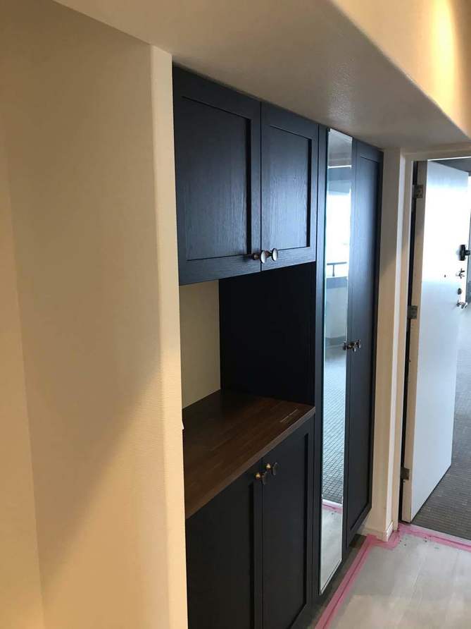 建物種別 マンション リフォーム箇所 全面、キッチン、洗面化粧室、トイレ、リビング・ダイニング、寝室・居室、玄関 もともとの洋室を取り壊しシューズインクローゼット+ウォークインクローゼットを設けました。玄関からシューズイン、ウォークインへと回遊できる動線となっております。