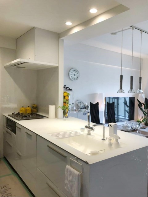 建物種別 マンション リフォーム箇所 キッチン リフォーム価格 155万円 工期 3日間 暗い印象のキッチンにお悩みでしたので、カウンターや扉カラーはホワイトを基調に選択。壁と吊り戸棚を撤去し明るく開放的な空間になりました。