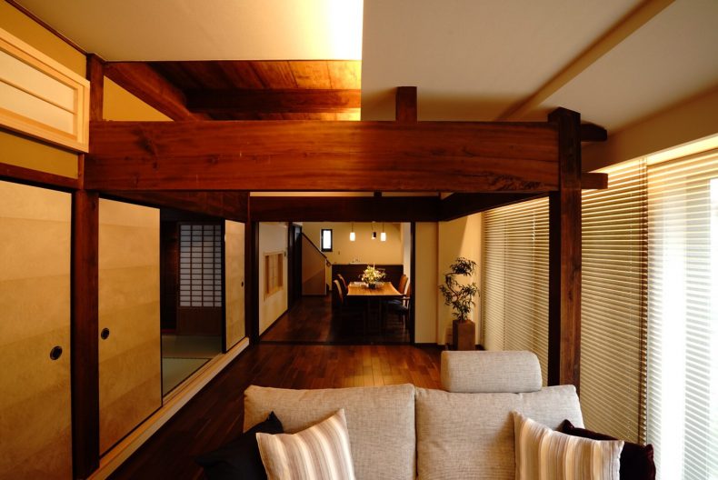 建物種別 一戸建て リフォーム箇所 全面、キッチン、浴室、洗面化粧室、トイレ、リビング・ダイニング、寝室・居室、玄関、外壁・門まわり 工期 7か月 実家の古民家を子世帯が新しい住まいへリノベーションしました。モダンと古民家の木材を活かした空間へ