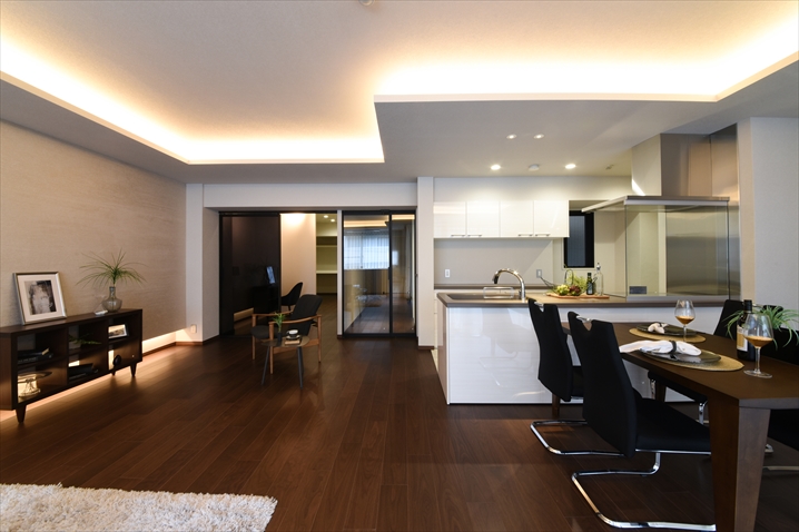建物種別 マンション リフォーム箇所 全面、キッチン、浴室、洗面化粧室、トイレ、リビング・ダイニング、寝室・居室、玄関 リフォーム価格 1460万円 工期 2か月 当社と提携している大手不動産仲介会社様の買取再販物件のフルリノベーション事例です。リビングドアにはガラスの扉を採用、空間に広がりと高級感を出しました。