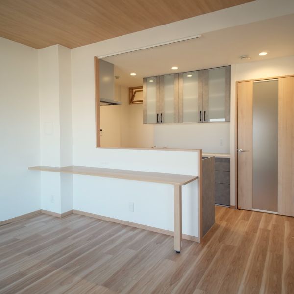建物種別 マンション リフォーム箇所 キッチン、浴室、洗面化粧室、リビング・ダイニング、寝室・居室、玄関、その他 リフォーム価格 620万円 工期 3週間 対面カウンターは両側に通路を残しています。動線を意識し、グルっと回れる機能的な「回遊型」のキッチンです。高さのある吊戸棚は特殊なオーダーで収納力抜群!
