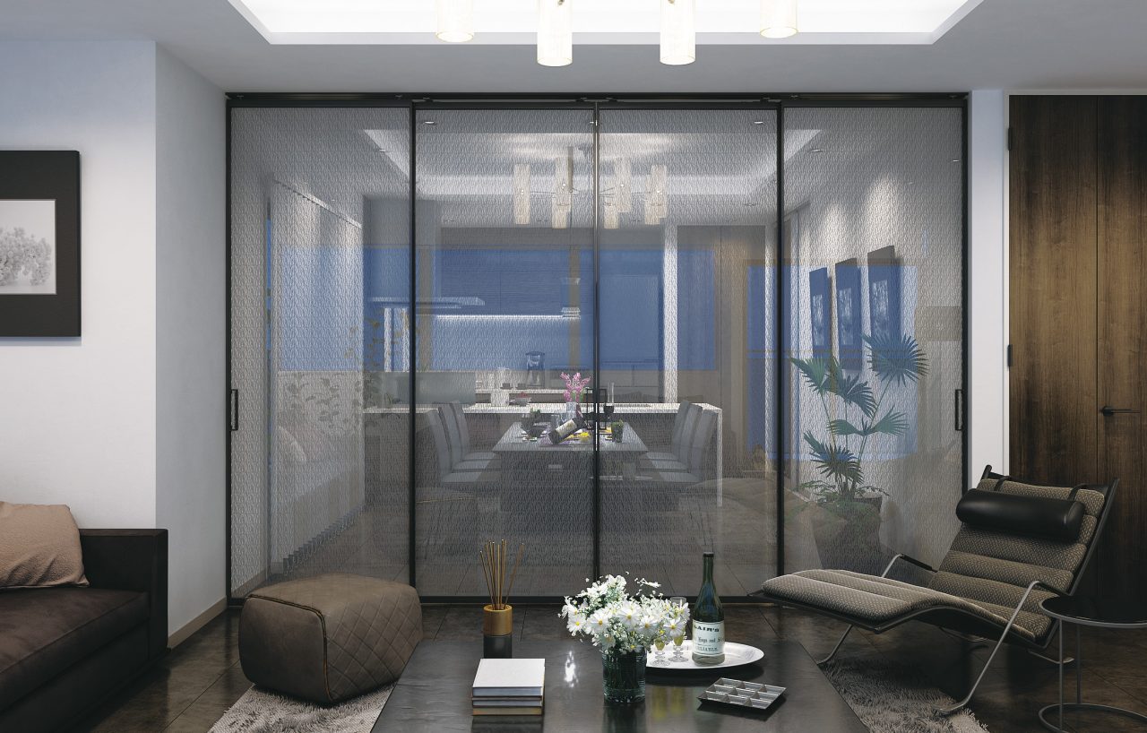 空間を上質に、自在に、さまざまなシーンに合わせてアレンジできる、ハイデザインなスライディングパーティションです。幅11㎜のスリムな縦フレームなど細部までこだわった仕様です。