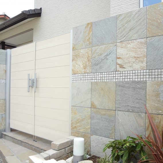 ホワイトを基調としたタイルなどの建材を組み合わせ、優しいフレンチシックなエクステリアに…