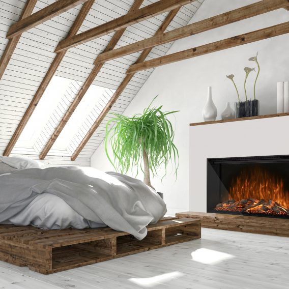 世界で一番進化した電気暖炉。最新式のNEW HELIOVISION技術で、リアルな炎と薪の音と火の粉を生み出します。