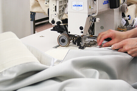 生地の企画、デザインに始まり縫製ー販売ー施工と一貫した生産体制を、確立しています。流通コストやグランドロイヤリティを徹底的にカット。中間コストが発生しない為ロープライスを実現させました。生産コストを抑える事で生地、縫製に妥協する事無く、高品質なオーダーカーテンをお客様に提供いたします。国内最大級のオーダーカーテン専門工場ならではの均一価格の実現です。