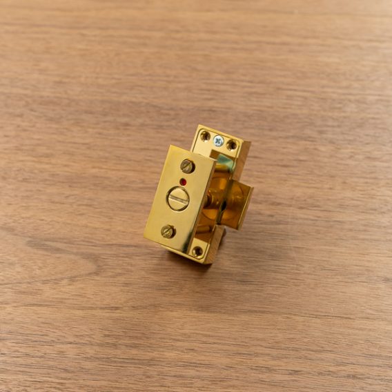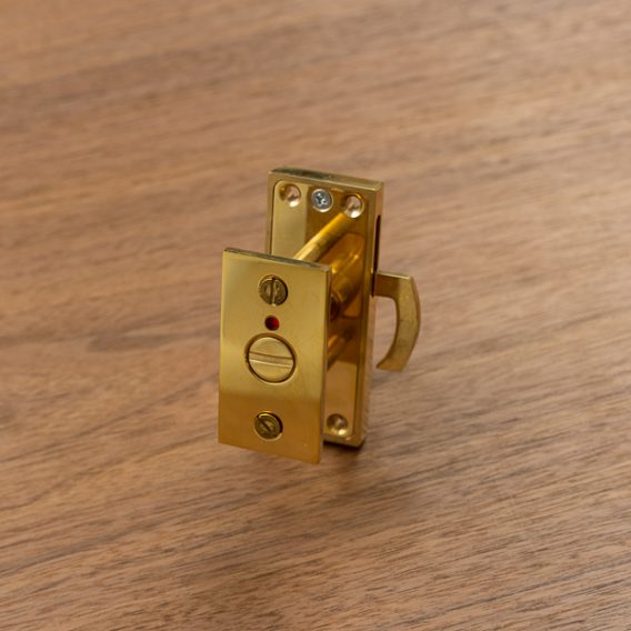 真鍮削り出しでシャープなデザインの引戸錠です。細い框のドアにお使いいただけます。