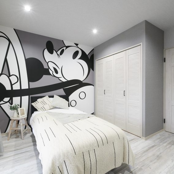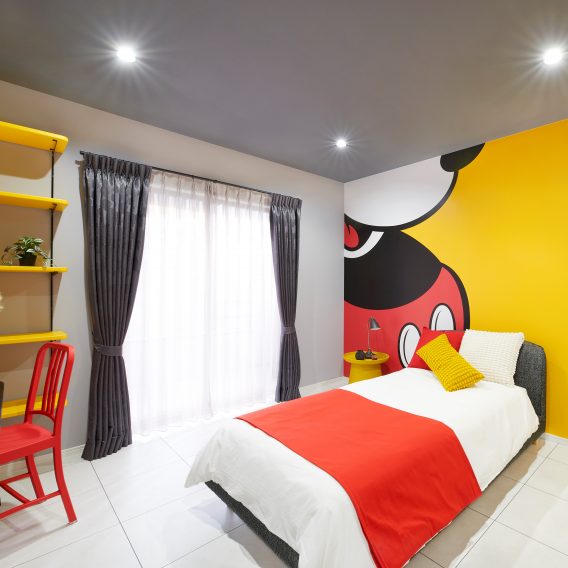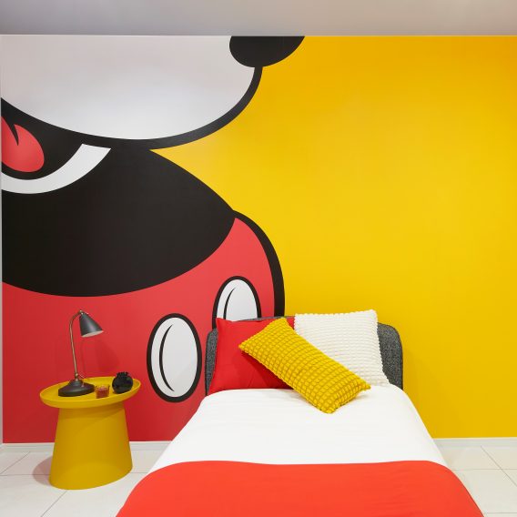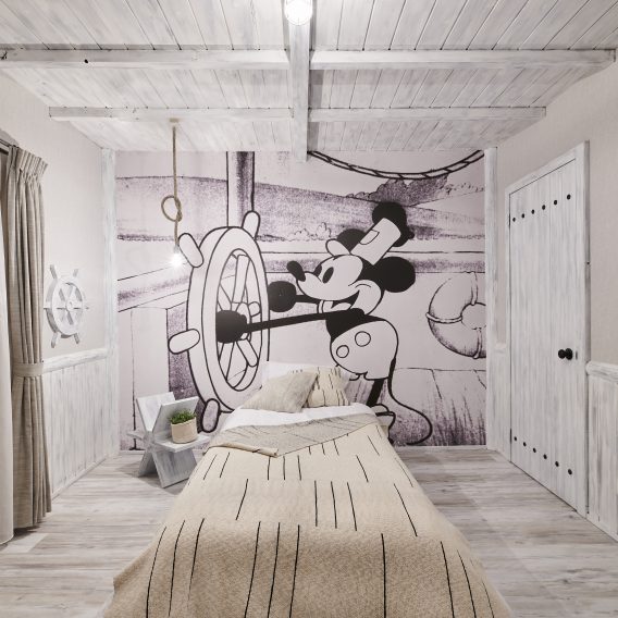 カラーモダンスタイル世界中で愛されているミッキーマウスからインスパイアされたデザインルーム。ミッキーのアイコニックなカラーやグラフィックで、ポップで陽気なお部屋に変身します。