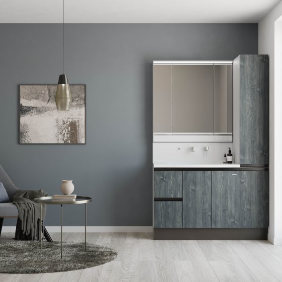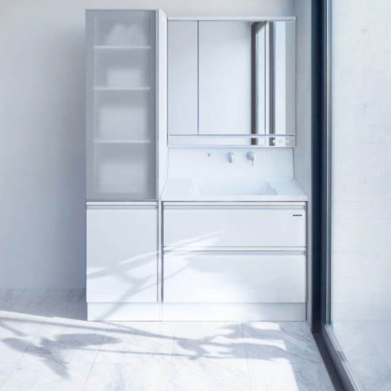 シンプルなデザインと多彩なカラーの、機能性を追求したホーロー洗面化粧台。広く底面が平らな広ろびろボウルに、使い分けができる2つのエリアを備えた2wayカウンターで使い勝手も抜群です。