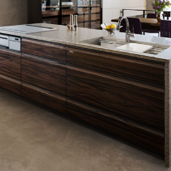 キラキラと輝く天然水晶の風合いを持った、気品のある「クォーツストーンカウンター」も選べます。