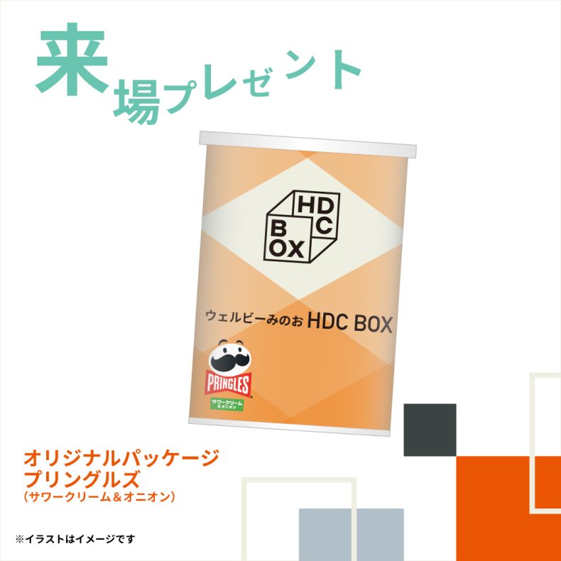 オープンを記念し、来場いただきHDC BOXのWEBアンケートに回答いただいた方にHDC BOXオリジナルデザインのプリングルズをプレゼント!