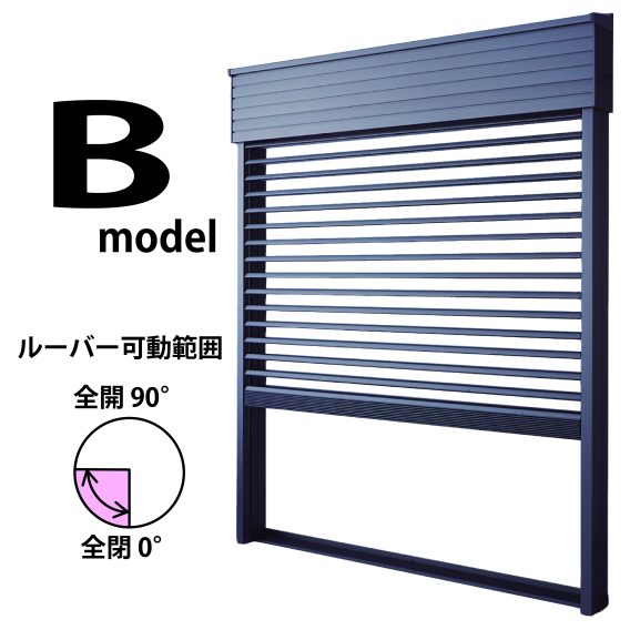 Bモデルは、電動タイプでルーバーの角度を0°~90°の範囲で自由に調節することで、室内の環境(換気・通風)や明るさ(採光・遮光)などをコントロールでき、外からの視線を遮ることができます。
