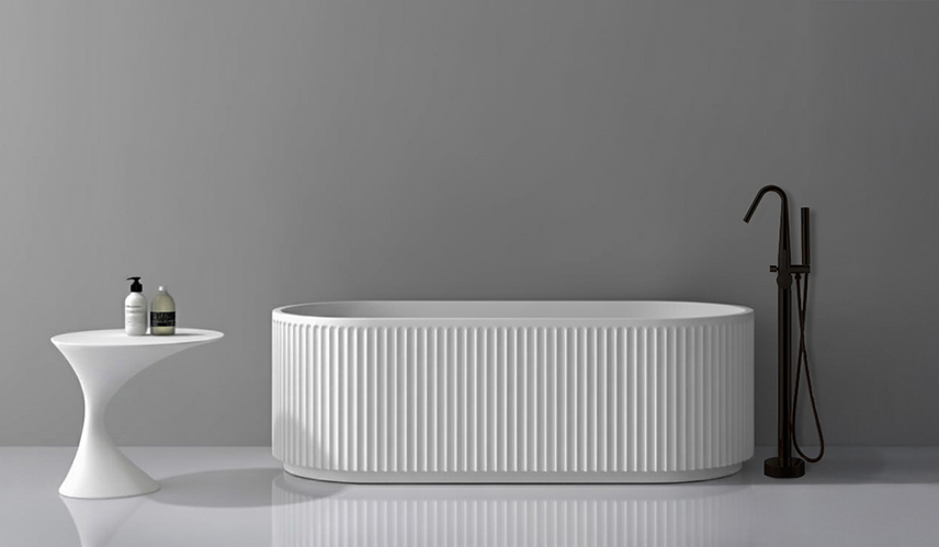 人工大理石製のバスタブは滑らかな曲線で構成され、マットな質感は肌触りも優れています。無垢材で磨くことができますので、末永く美しくご利用いただけます。