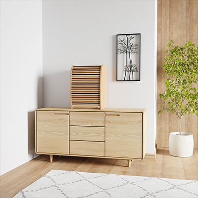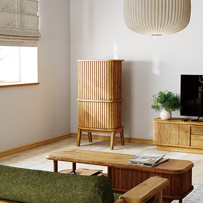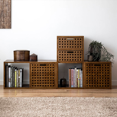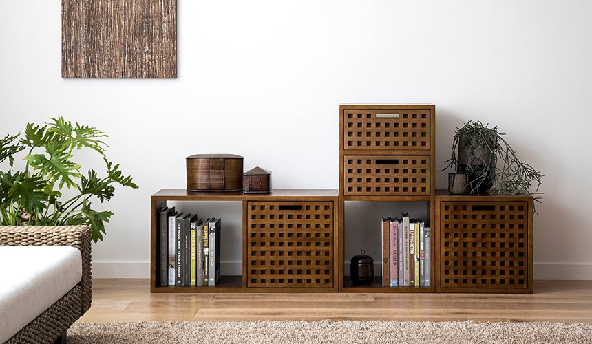 無垢材の温かみが伝わる、組み換え自由な収納。ライフスタイルの変化に合わせて使うことが可能です。