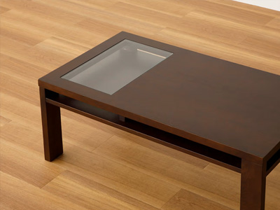 脚から天板にかけて木目がつながり、一枚板で作られたようなデザインが魅力です。