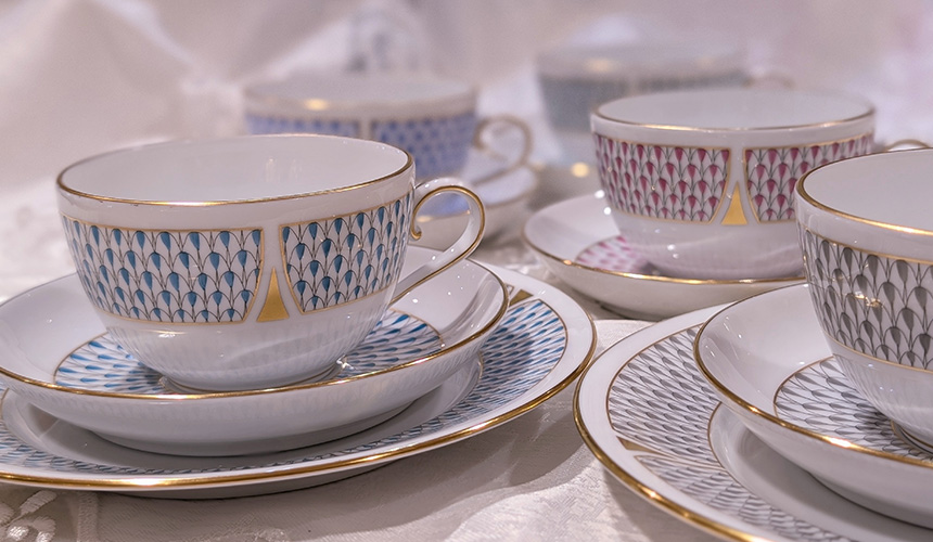 モダンとクラシックが調和するアール・デコシリーズ。幾何学模様や大胆な色使いが特徴で、ヘレンドの伝統技術と洗練された美意識が融合した逸品。日常にエレガンスを添えるアクセントとしておすすめのコレクションです。