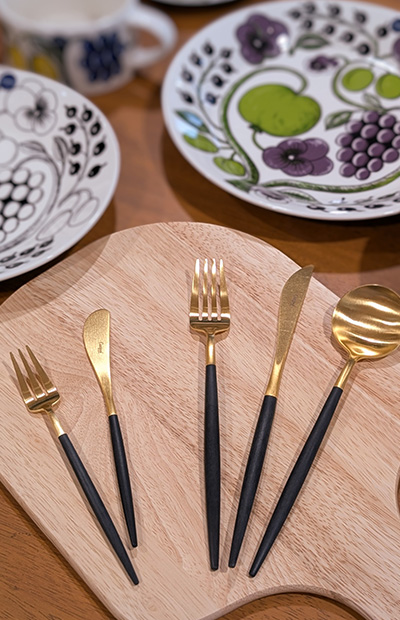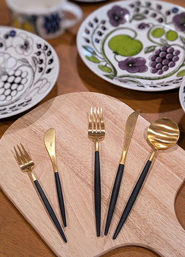 "Aurelia"の訳は、“水海月(ミズクラゲ)”。無垢天板にアイアン脚を組み合わせたスタイリッシュな雰囲気は、シンプルでありながら個性的