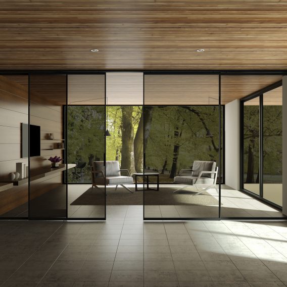 上質なデザインのガラスパーティション。他に類を見ないハイエンド・ラグジュアリーな建具が、空間演出の可能性を広げます。