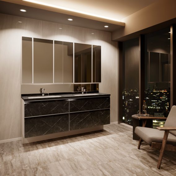 ファミーユシンプルなデザインと多彩なカラーの、機能性を追求したホーロー洗面化粧台。