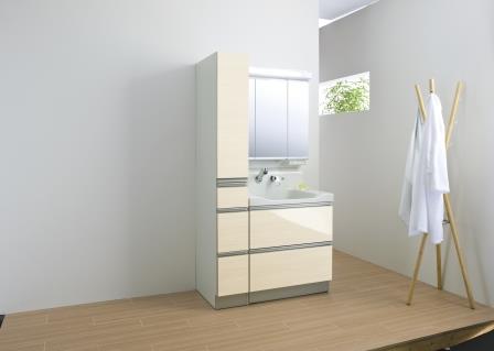 壁出し水栓、優れた収納力など使い心地のよさを考えたきめ細かい工夫がたっぷり。通気性に優れた「乾くん棚」は湿気も臭いも自然に換気してくれます。