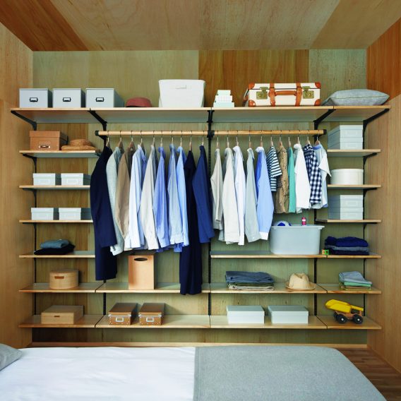 ハコモノ、タナモノ、カナモノを自由に組み合わせて作る収納です。
