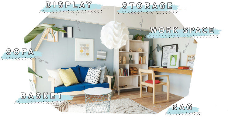 それでは、ここからはおしゃれで快適な「リビング収納」や「インテリアコーディネート」のポイントをご紹介します。