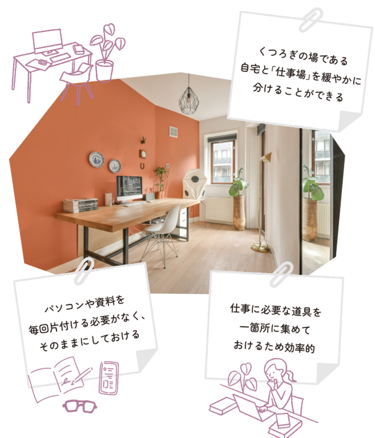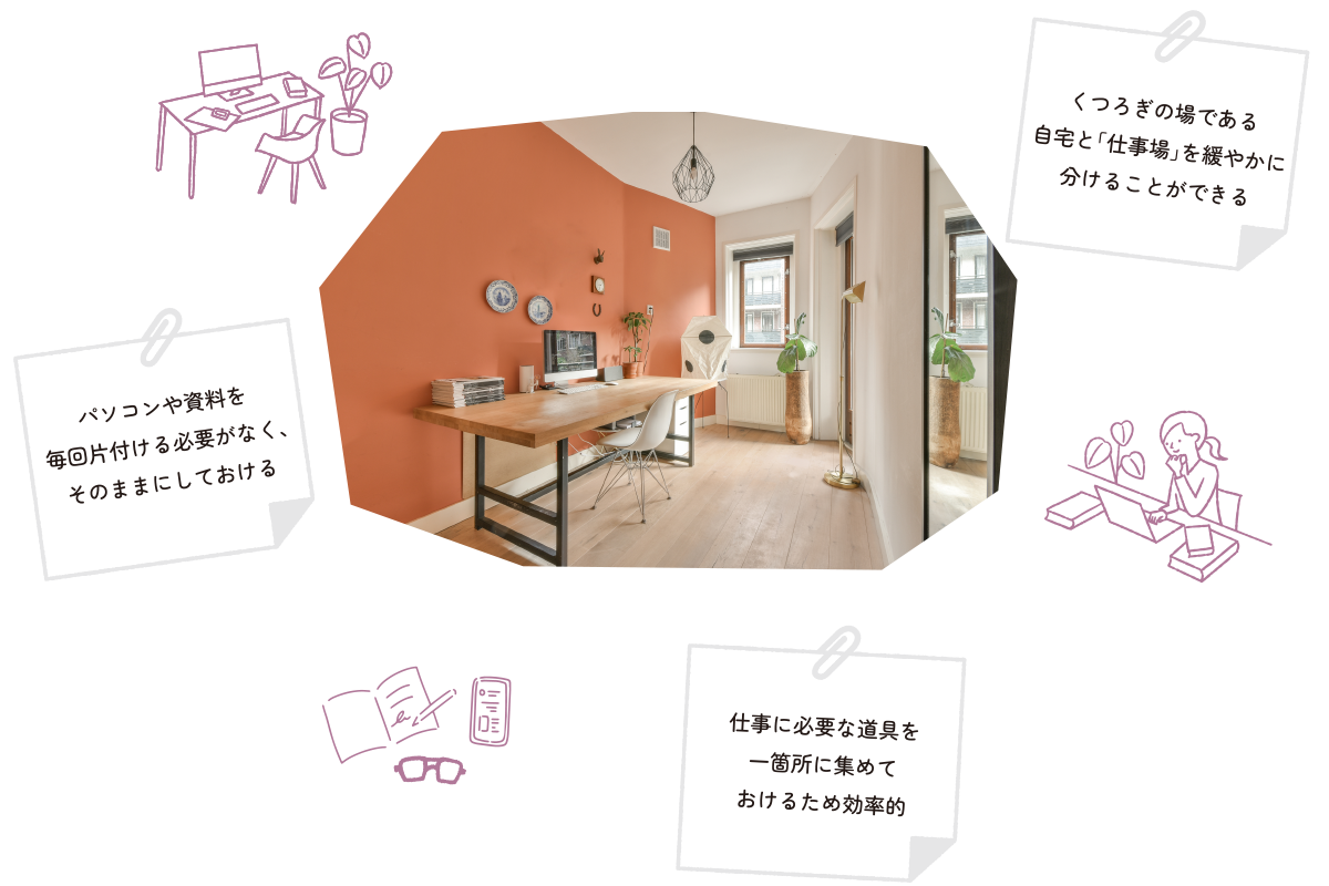 ですが、限られた部屋数のなかで1部屋を仕事場にすることが難しい場合もありますよね。