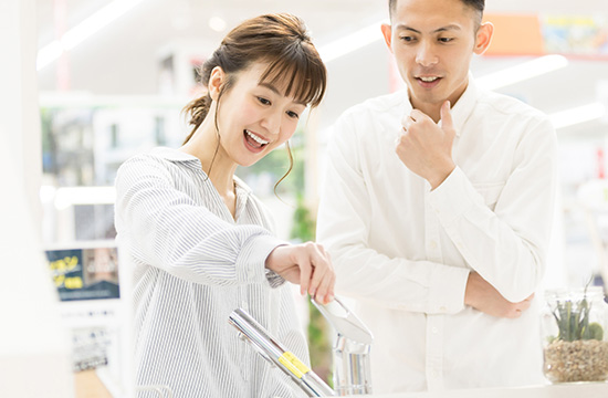リフォーム会社の店舗に実物展示がなくても、リフォーム会社の担当者と設備や素材のショールームに行けば、プロのアドバイスを受けながら実物を